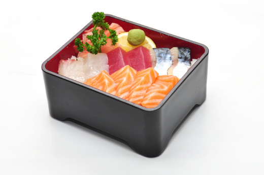 Soupe, salade, riz, 10 sashimi assortiment 4 Brochettes: 1 poulet, 1 boulette de poulet 1 boeuf, 1 boeuf au fromage