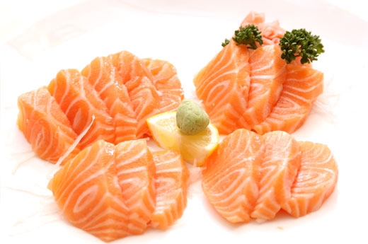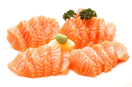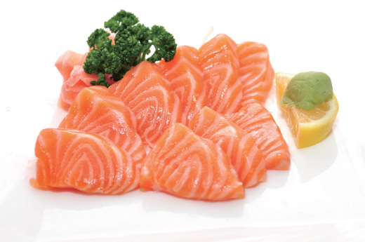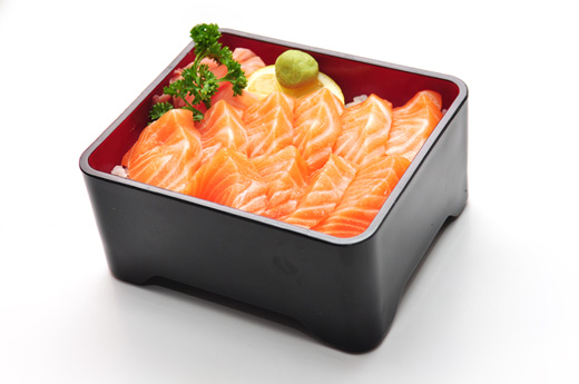 Soupe, salade, riz 6 sashimi saumon, 3 sushi saumon, 3 brochettes saumon