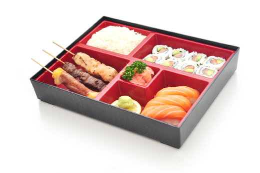 Soupe, salade, riz 4 Sushi assortiment 4 Brochettes: 1 poulet, 1 boulette de poulet 1 boeuf, 1 boeuf au fromage