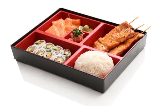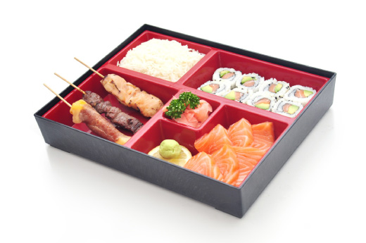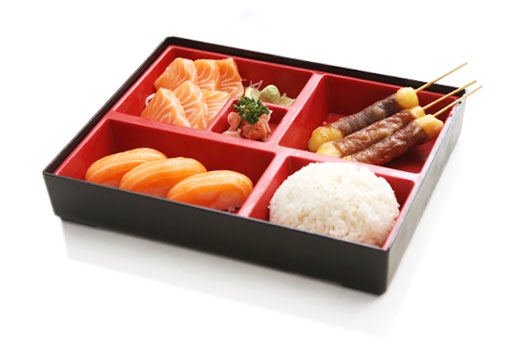Soupe, salade, riz 6 Sashimi saumon, 3 sushi saumon, 3 brochettes : 1 poulet, 1 boeuf,1 boeuf au fromage