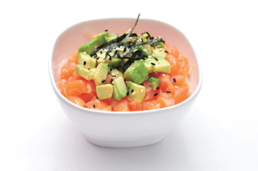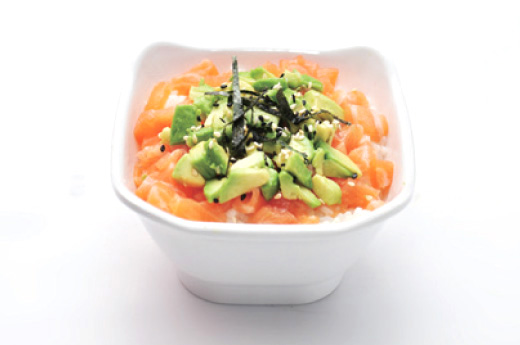 1 Salade, 1 Soupe Saumon et avocat sur riz vinaigré
