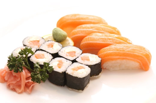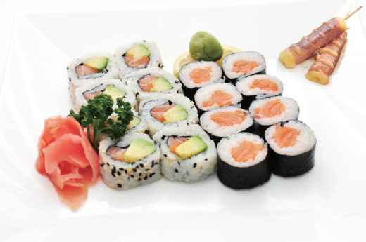 Soupe, salade, riz 4 Sushi saumon, 8 maki saumon