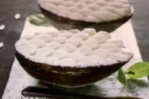 1 petit dessert (Nougat, lychée, perle de coco,chips crevettes )