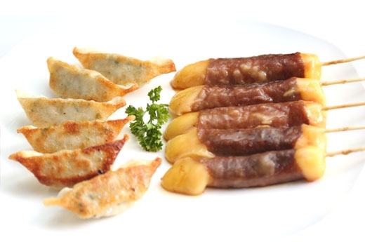 6 Raviolis grillés japonais, 5 boeuf au fromage