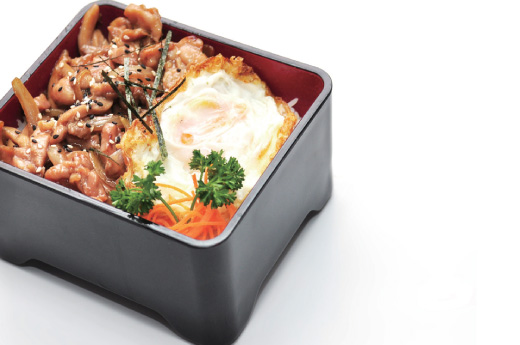 1 Salade, 1 Soupe Boeuf sauté et oeuf sur riz nature