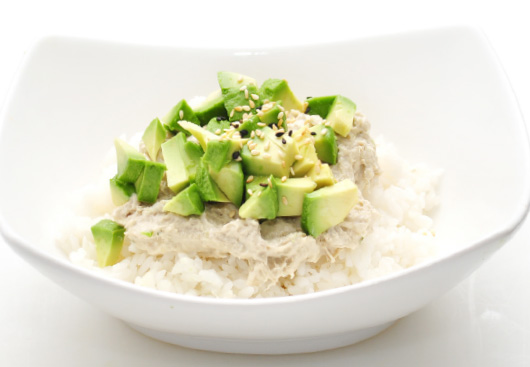 1 Salade, 1 Soupe Thon cuit mayo et avocat sur riz vinaigré